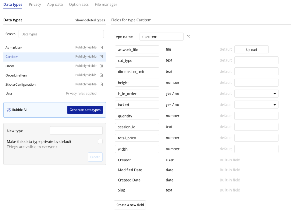 這時候我轉向了 Bubble.io。用一句話來說:它給了我一張白紙,讓我畫自己貼紙印刷商店的流程。